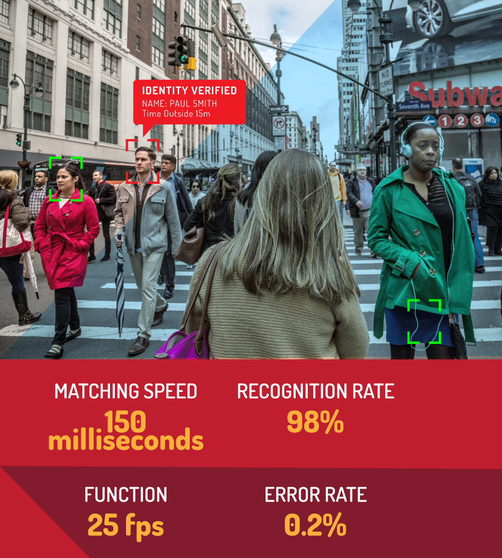 The matching speed of FACEHAWK is 150 milliseconds with a 98% recognition rate. It constantly performs its function on 25fps with an error rate of 0.2%. It has a user-friendly Graphic User Interface (GUI), which empowers its user to use the software efficiently. It also empowers its users in decision making and to take preventive actions based on the in-built business intelligence reports generated through live events. It is highly secure as well as cost-effective.